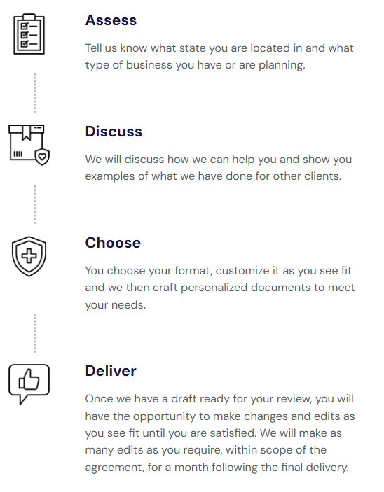 First, we need to meet with you via zoom to understand you and your business plan. Next, we can review the templates that we have available in case we can use information that we already have available to save you time and money.